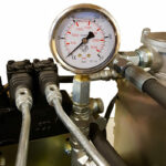 Tryckmätare visar alla tryck i kranens funktion. Driv- och lyftkraft samt även